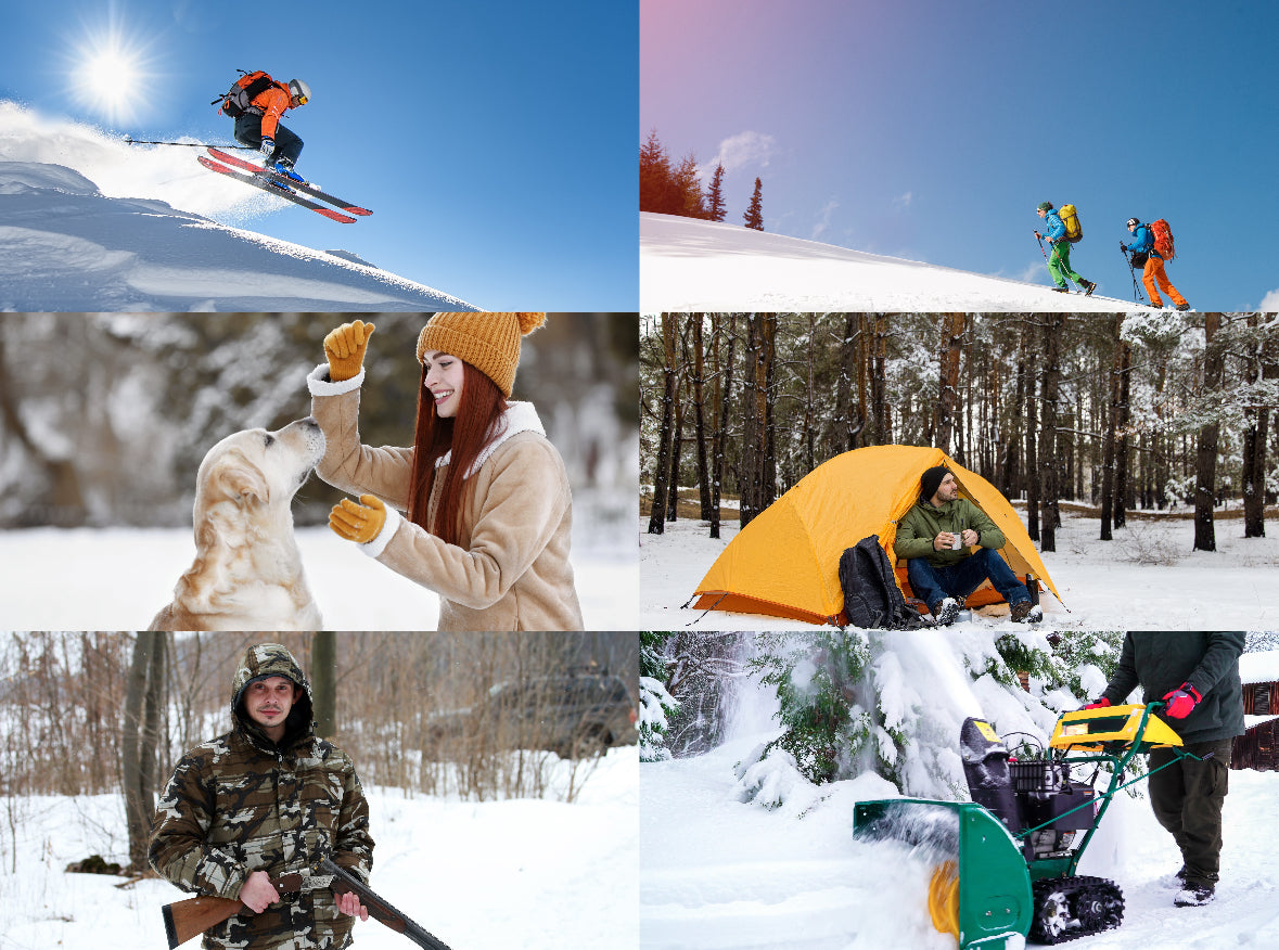 Skiing, snowboarding, camping, and other outdoor winter sports