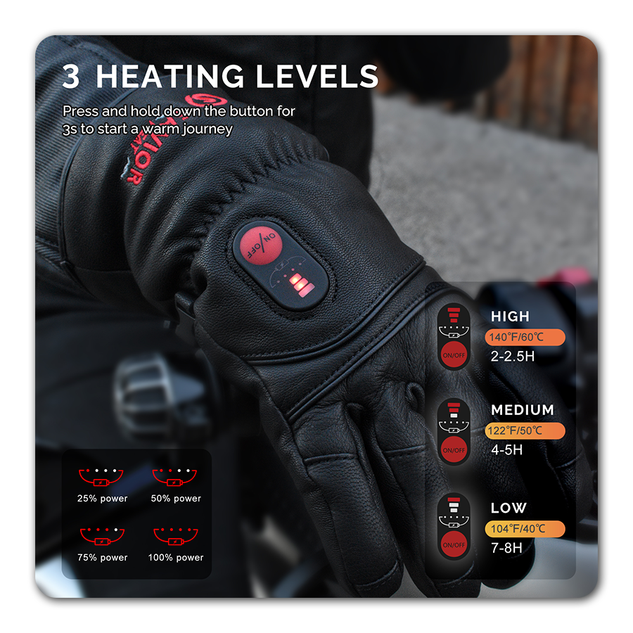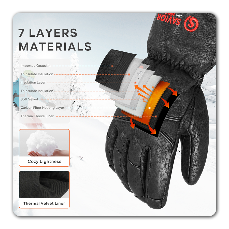 Experience ultimate warmth and comfort with these premium full goat-skin leather heated gloves, perfect for cold-weather adventures: