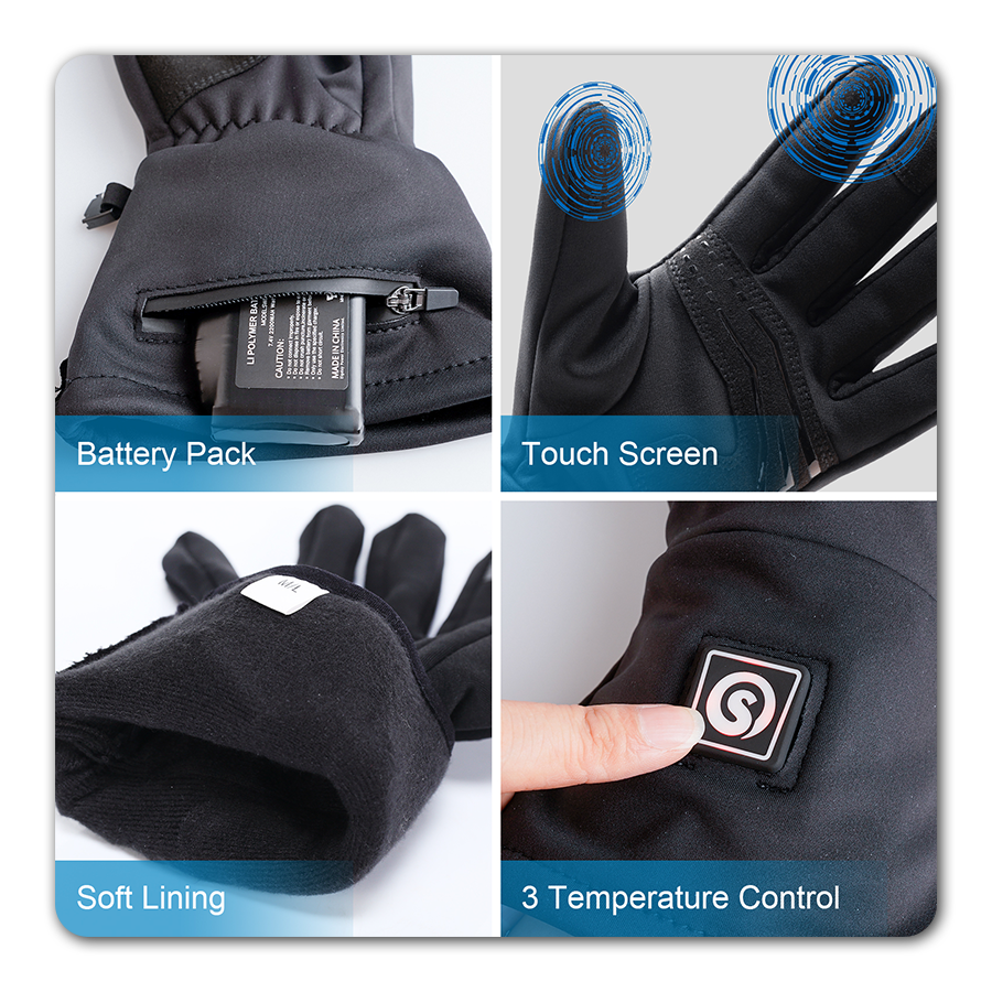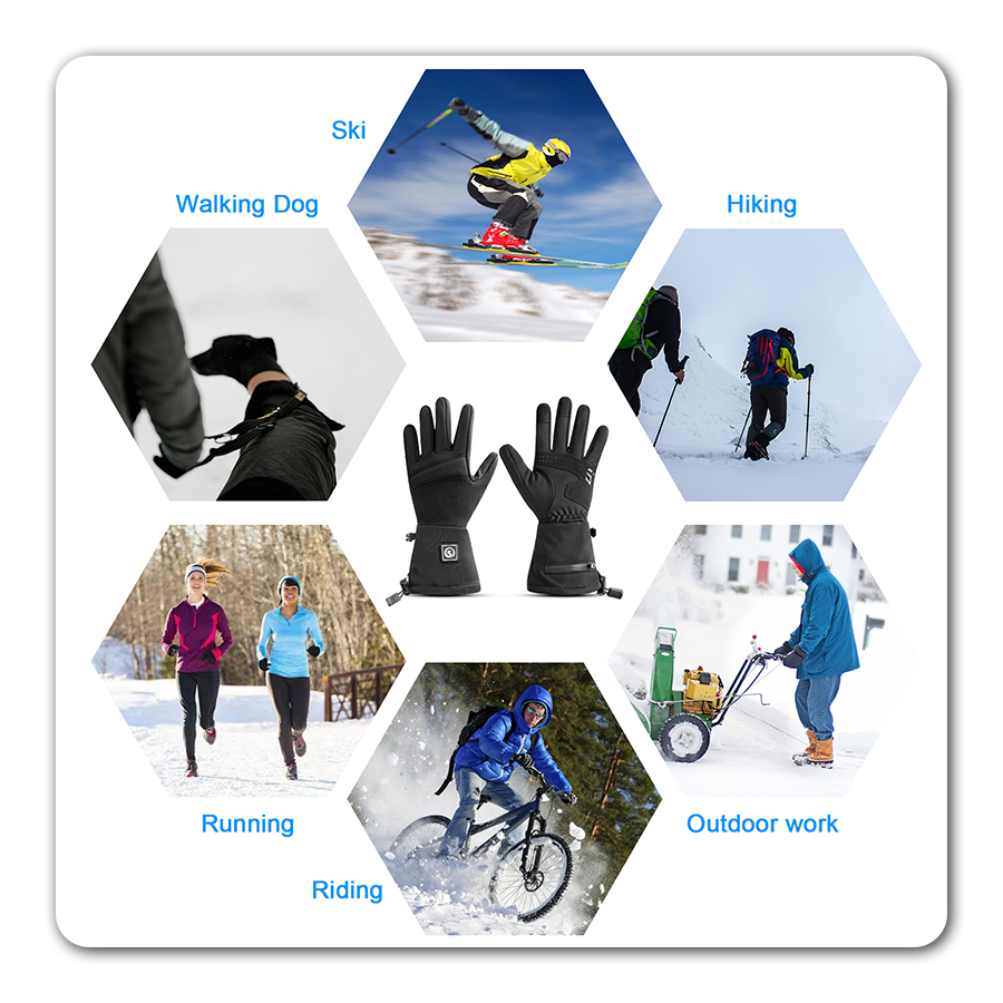 - As heated liner gloves inside ski gloves or motorcycle gloves