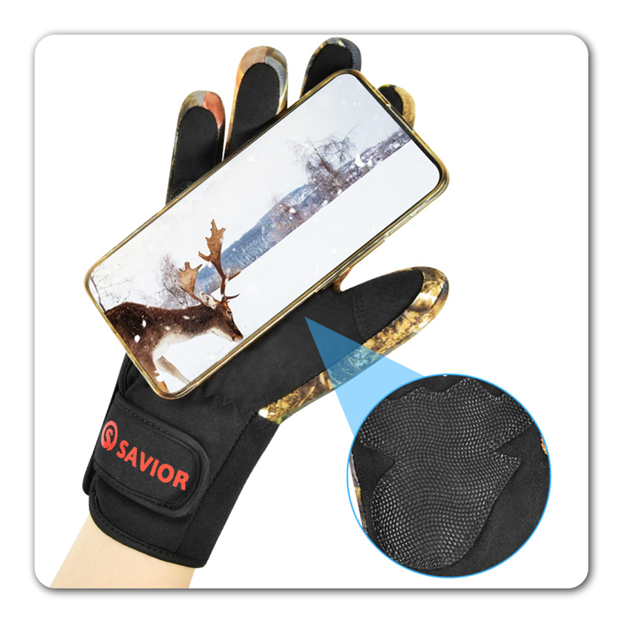 Touchscreen-compatible heated gloves for hunting and outdoor winter use