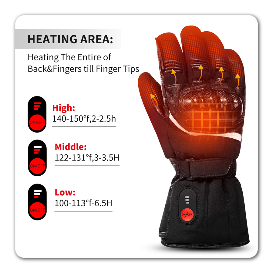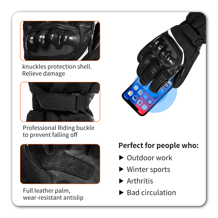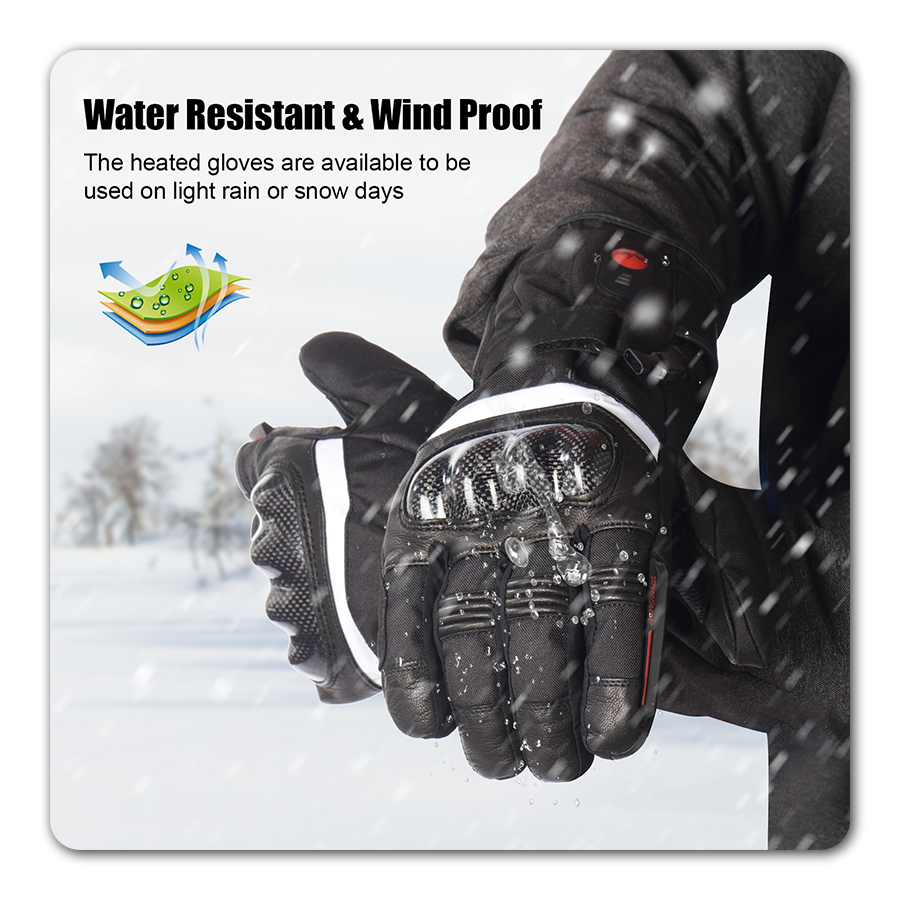 The three-level heating system provides stable heat output, suitable for riders looking for heated gloves for motorcycle winter and snowy conditions.